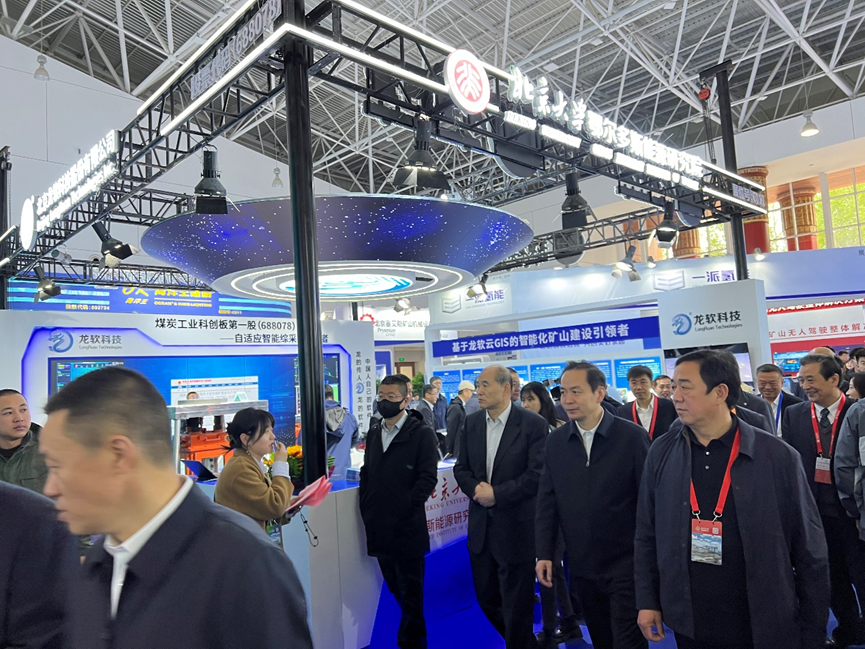 開幕式結束后,國家能源局原副局長吳吟等與會領導在鄂爾多斯市委書記李理,市委副書記、市長杜匯良的陪同下到部分重點展商展位參觀指導及深入交流。在龍軟科技展臺,總經理姬陽瑞先生向巡展領導和專家重點展示了公司系列化的核心技術和產品。