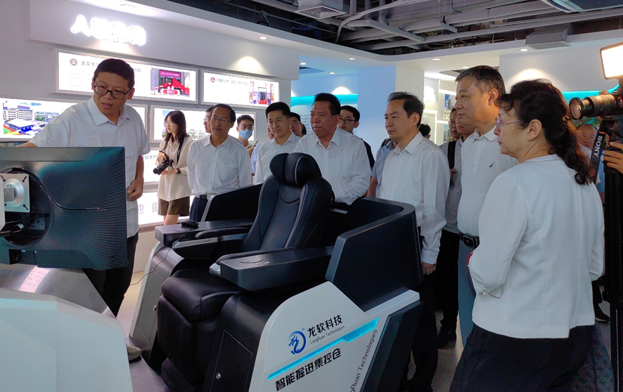與會領導和嘉賓參觀龍軟科技智能化掘進集控倉