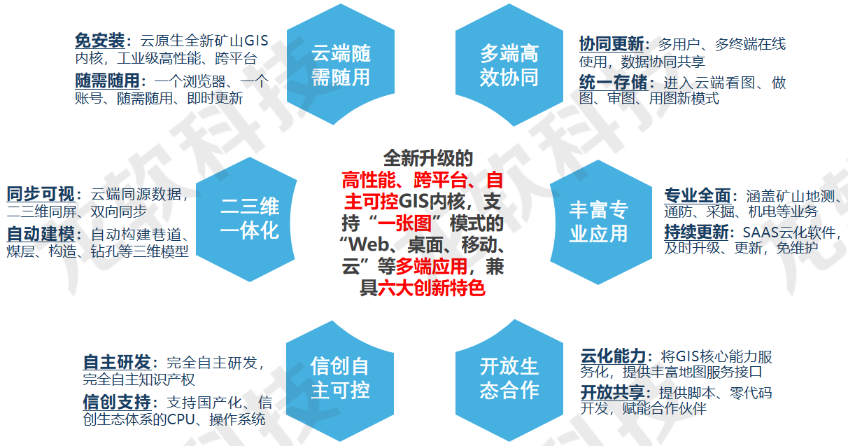 基于云服務(wù)架構(gòu)的龍軟云GIS(云地理信息系統(tǒng),簡稱“龍軟智圖v1.0”)龍軟科技從底層開發(fā)的、具有完全自主知識產(chǎn)權(quán)的新一代專業(yè)地理信息系統(tǒng)。該產(chǎn)品基于云服務(wù)、大數(shù)據(jù)、分布式協(xié)同、時空智能等技術(shù),針對礦山地測防治水、透明化地測保障、一通三防、采礦設(shè)計和供電設(shè)計等多維專題圖形處理實際需求,采用面向服務(wù)的架構(gòu)體系開發(fā),具有實用、易用、先進(jìn)、可靠、可擴(kuò)展等特點。