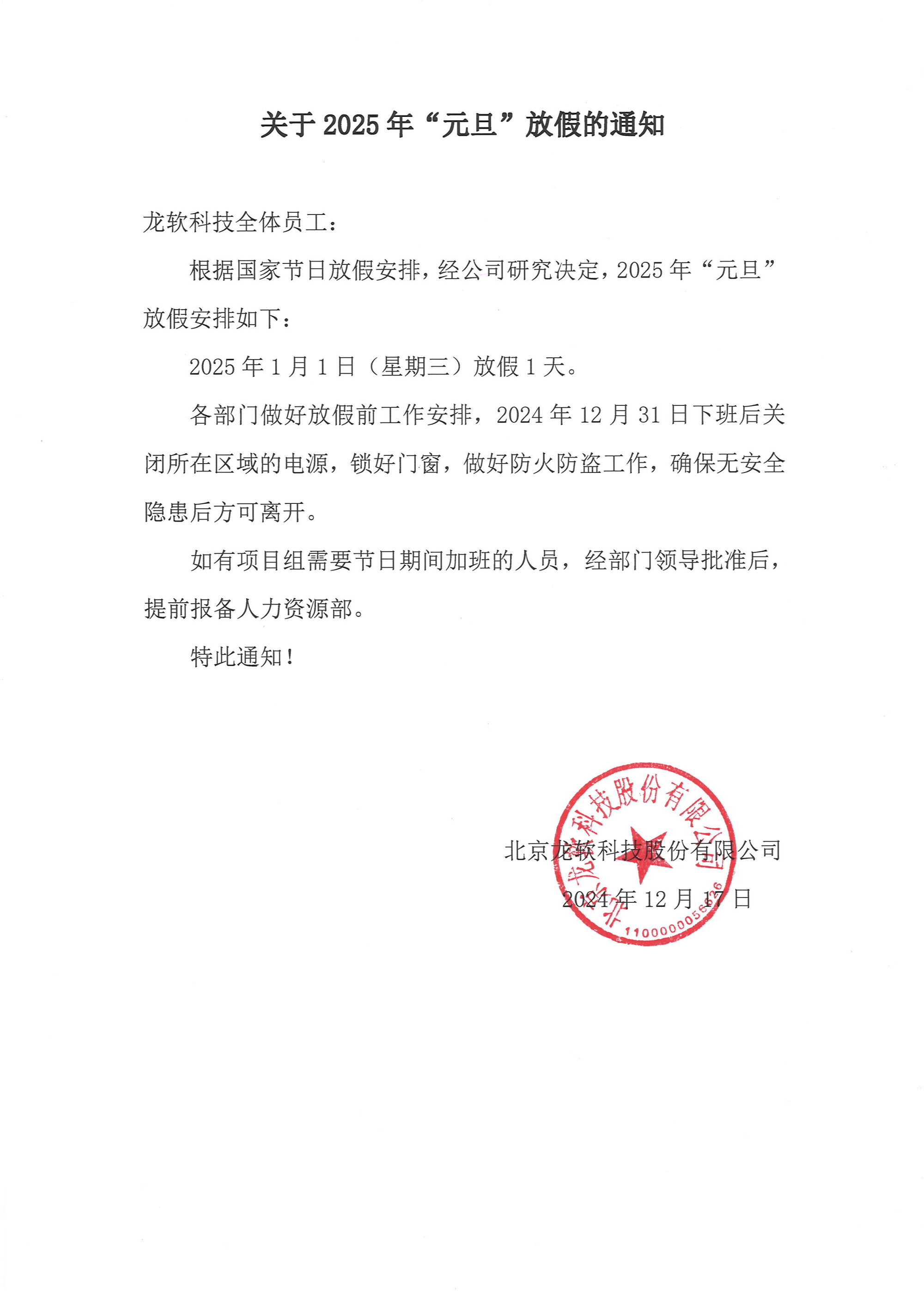 關于2025年“元旦”放假的通知