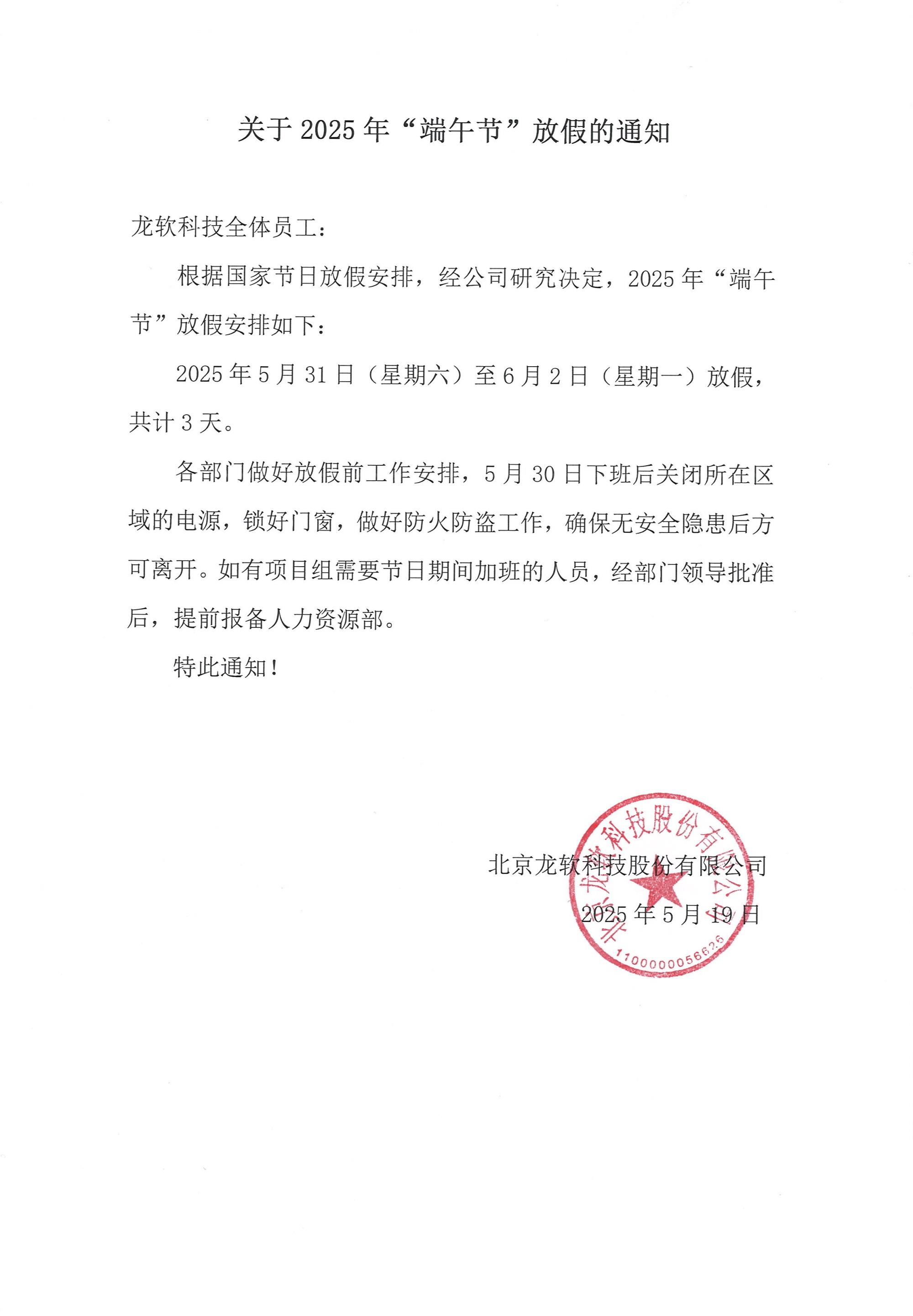 關于2025年“端午節”放假的通知